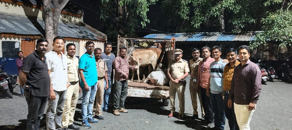 माहितीच्या आधारे पोलिसांनी तत्काळ घटनास्थळी धाव घेतली. दोन पंचांच्या उपस्थितीत छापा टाकण्यात आला असता, एक गाय व तिची तीन गोरे असे एकूण चार गोवंश जातीची जनावरे अत्यंत निर्दयपणे आखुड दोरांनी बांधलेली आढळून आली.
