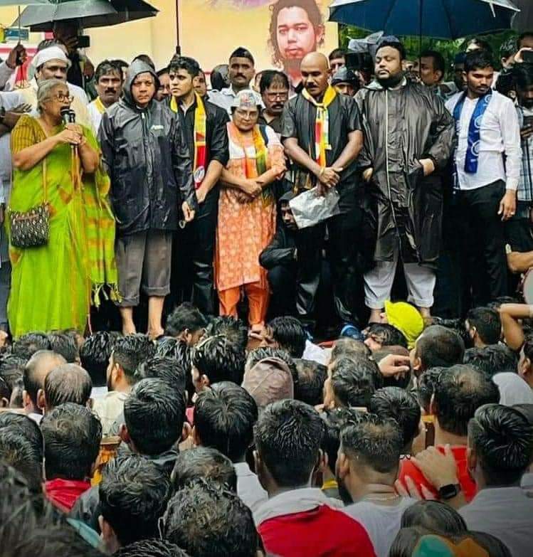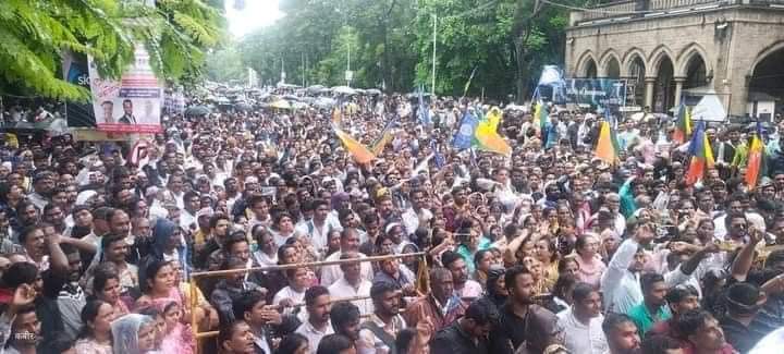 तुफान पावसात उसळलेल्या तुफान गर्दीचा हा महामोर्चा यशस्वी झाल्याचे बाळासाहेब आंबेडकर यांनी जाहीर केले. मागण्या मान्य केल्याबद्दल शासनाचे व सहकार्य केल्याबद्दल सर्व नागरिकांचे, मुंबई पोलीस व पोलीस आयुक्त यांचे आभार यावेळी त्यांनी व्यक्त केले. मोर्चामध्ये वंचित बहुजन आघाडीच्या प्रदेशाध्यक्ष रेखाताई ठाकूर, अंजलीताई आंबेडकर, अशोकभाऊ सोनोने, किसन चव्हाण, डॉ. धैर्यवर्धन पूंडकर, प्रियदर्शी तेलंग, सर्वजित बनसोडे, सिद्धार्थ मोकळे, अरुंधतीताई शिरसाठ, विष्णू जाधव, नीलेश विश्वकर्मा, राजेंद्र पातोडे, अमित भुईगळ, शमीभा पाटील, अक्षय बनसोडे, चेतन गांगुर्डे, डॉ. क्रांती सावंत, प्रा. निशा शेंडे, अबुल हसन खान, सुनीताताई गायकवाड, परमेश्वर रनशुर आदी नेते पदाधिकारी मंचावर उपस्थित होते.