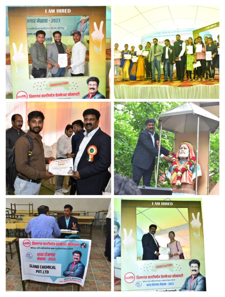 स्थानिक : मुर्तिजापूर येथील श्री. गाडगे महाराज विद्यालय व कनिष्ठ विज्ञान महाविद्यालय, मेन रोड येथे भव्य रोजगार मेळाव्याचे आयोजन करण्यात आले होते.यामध्ये सातवी ते पदवीधारक तरुण तरुणी सहभागी झाले होते. मान्यवरांच्या हस्ते दीप्रज्वलन करून भव्य रोजगार मेळाव्याचे उद्घाटन करण्यात आले. यावेळी तिक्ष्णगत मल्टीपर्पज वेल्फेअर सोसायटी चे अध्यक्ष डॉ. सुगत वाघमारे यांनी विद्यार्थ्यांना शुभेच्छा देऊन शिक्षण व रोजगाराचे महत्व पटवून दिले. उद्घाटनप्रसंगी डॉ. सुगत वाघमारे यांच्यासह युवा उद्योजक तिक्ष्णगत वाघमारे, जॉब कनेक्ट चे संचालक रघुराम गायकवाड , महाराष्ट्र राज्य बाल हक्क सौरक्षण आयोग सदस्य ॲड. संजय सेंगर, अकोला जिल्हा बाल कल्याण समितीच्या अध्यक्षा ॲड. अनिता गुरव, निसर्ग प्रेमी शरद कोकाटे, ए.जी.एम. वाय.सी.एफ. वैभव कुलकर्णी, संस्थेचे सचिव विष्णुदास मोंडोकर यांच्यासह विशाल शिंदे, श्रीकांत पिंजरकर, अमित खांडेकर तथा अनेक मान्यवर व हजारो तरुण तरुणी उपस्थित होते.