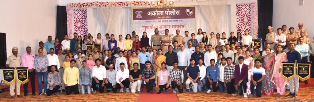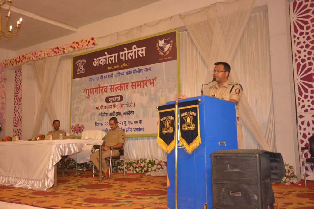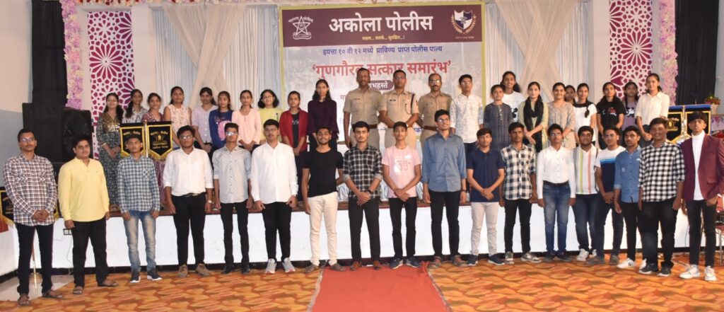 अकोला: दिनांक २२.०६,२०२४ रोजी दुपारी १६.०० वा राणी महल अकोला पोलीस लॉन अकोला येथे मा. पोलीस अधीक्षक, बच्चन सिंह यांच्या अध्यदक्षते खाली इयत्ता १० वी १२गधे प्राविण्य प्राप्त पोलीरा पाल्यांचा गुणगौरव सत्कार सोहळ्याचे आयोजन करण्यात आले होते. सदर कार्यक्रमा करीता मा. अपर पोलीस अधीक्षक अभय डोंगरे, मा. सतिश कुळकर्णी उपविभागीय पोलीस अधीकारी शहर विभाग यांची प्रमुख उपस्थीती होती,