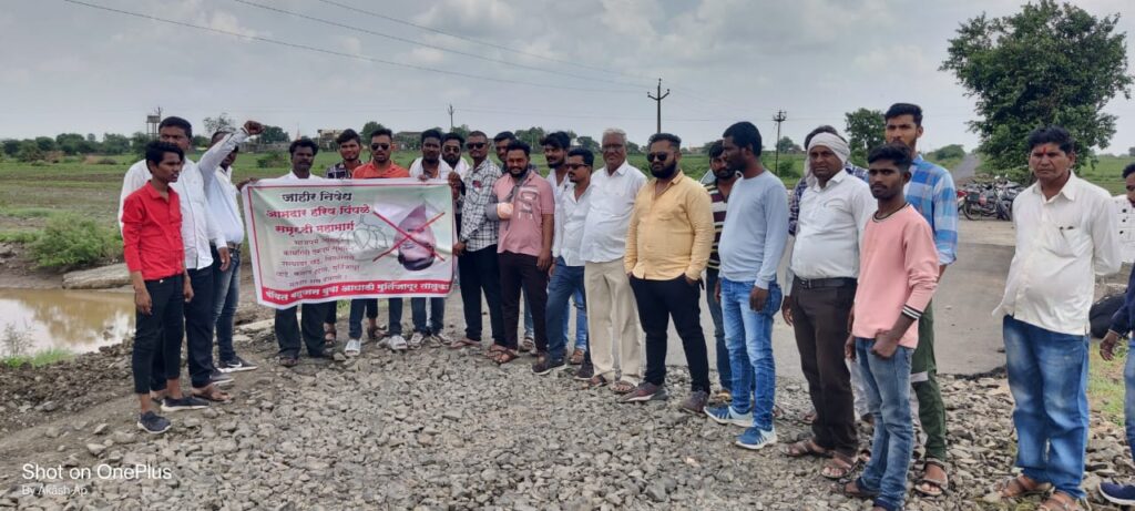 मुर्तिजापूर प्रतिनिधी मुर्तिजापूर-तालुक्यातील मुर्तिजापूर शेलु बोंडे मार्गे अकोला रोडवरील जितापुर येथील पुलभाजप चे आमदार हरीष पिंपळे यांच्या स्थानिक विकास निधीतून बांधण्यात आला होता त्या रस्त्याने पहिला पाऊस पडतो न पडतो रस्त्यावर खड्डे पडले आणि रेती व गिट्टी निघून रस्ता वाहुन गेला होता या घटनेचा वंचित बहुजन युवक आघाडीने आ पिंपळे यांचा फोटो उलटा करुन आंदोंलन केलेमुर्तिजापूर शेलु मार्गे अकोला रोडवरील जितापुर नाकट येथे गेल्या वर्षी आ हरिष पिंपळे यांच्या स्थानिक विकास निधीतून पुलाचे बांधकाम करण्यात आले होते जुलै महिन्याच्या दुसऱ्या आठवड्यात तालुक्यात झालेल्या अतिवृष्टीमुळे पुर वाहुन गेला सदरहू कामावर वंचित बहुजन युवक आघाडी ने आक्षेप घेवून आज आंदोलन केलेत्यामुळे या परिसरातील नागरिकांना शेतीची, दैनंदिन कामे करताना खूप त्रासाला सामोरे जावे लागत आहे.वंचित बहुजन युवा आघाडी प्रदेश महासचिव राजेंद्र दादा पातोडे यांच्या मार्गदर्शनाखाली त्या विरोधात वंचित बहुजन युवा आघाडी मुर्तिजापूर तालुका च्या वतीने आमदार हरिष पिंपळे यांचा बॅनरवर उलटा फोटो टाकुन घोषणा देत निषेध नोंदवला..या रस्त्याची अवस्था अवघ्या ६ महिन्यात एवढी खराब होण्याचे कारण म्हणजे या रस्ता बांधकामात भ्रष्टाचार झाला आहे म्हणूनया रस्त्याच्या बांधकामात पैसे कोण कोण खाल् ले असा प्रश्न विचारत युवा आघाडी ने भ्रष्टाचारा विरोधात नारे देत आंदोलन केले.तात्काळ रस्त्याच्या भ्रष्टाचाराची चौकशी करून गुन्हे दाखल करा आणि नवीन रस्ता बांधकाम करा अन्यथा तिव्र आंदोलन करू असा इशारा वंचित बहुजन युवा आघाडी ने दीला.