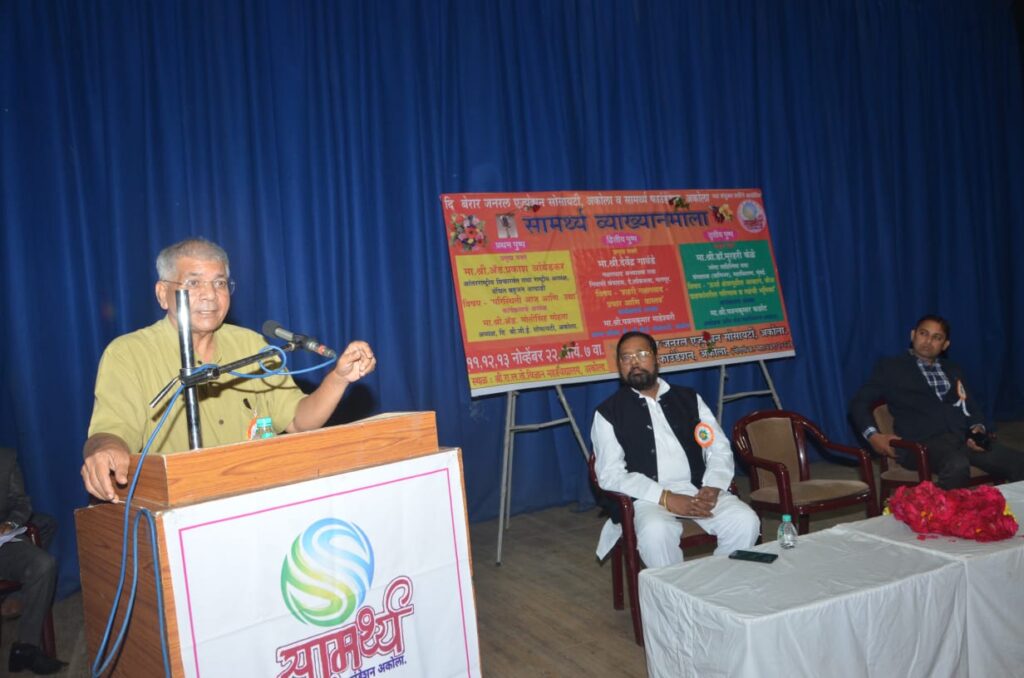 परिस्थिती आज आणि उद्या या विषयावर बोलतांना त्यांनी अतिशय अभ्यासपूर्ण व सखोल विवेचन केले. यावेळी अध्यक्षस्थानी ॲड.मोतीसिंह मोहता व विचारमंचावर प्रबोध देशपांडे अध्यक्ष सामर्थ्य फाउंडेशन, अकोला उपस्थित होते. व्याख्यानाला अकोल्यातील मान्यवर, विचारवंत, श्रोते यांचा उदंड प्रतिसाद लाभला. कार्यक्रमाच्या यशस्वीतेसाठी सामर्थ्य फाउंडेशन अकोला यांचे सर्व पदाधिकारी व कार्यकारिणी सदस्य यांनी अथक परिश्रम घेतले.