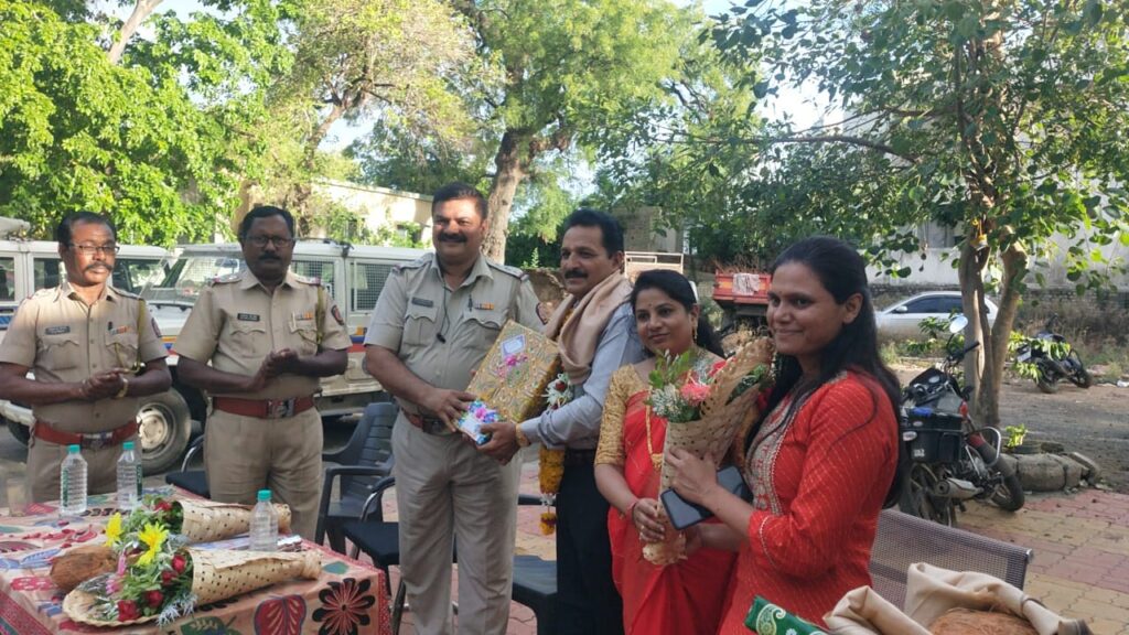 अकोला : पातूर पोलीस स्टेशनचे उपनिरीक्षक मा.हर्षु रत्नपारखी दि.30/6/023 रोजी सेवानिवृत्त झाले.सेवानिवृत्त दिनानिमित्त मा.हर्षु रत्नपारखी साहेबांचे सहपत्नी व कुटुंबासह पातुर पोलीस स्टेशनचे कर्तव्यदक्ष ठाणेदार मा.हरिष गवळी साहेब, सहाय्यक पोलीस उपनिरीक्षक मीरा सोनुने मॅम, सहाय्यक पोलीस उपनिरीक्षक मा. गजानन पोटे यांच्या हस्ते शाल,श्रीफळ व भेट वस्तू तसेच पुष्पगुच्छ देऊन सत्कार करण्यात आला.यावेळी निवृत्त कार्यक्रमाप्रसंगी महाराष्ट्र पोलीस बॉईज असोसिएशन टीम तर्फे पुष्पगुच्छ देऊन सत्कार करण्यात आला.तसेच छत्रपती शिवाजी महाराज यांची प्रतिमा भेट दिली.व पुढील वाटचालीसाठी शुभेच्छा देण्यात आल्या.