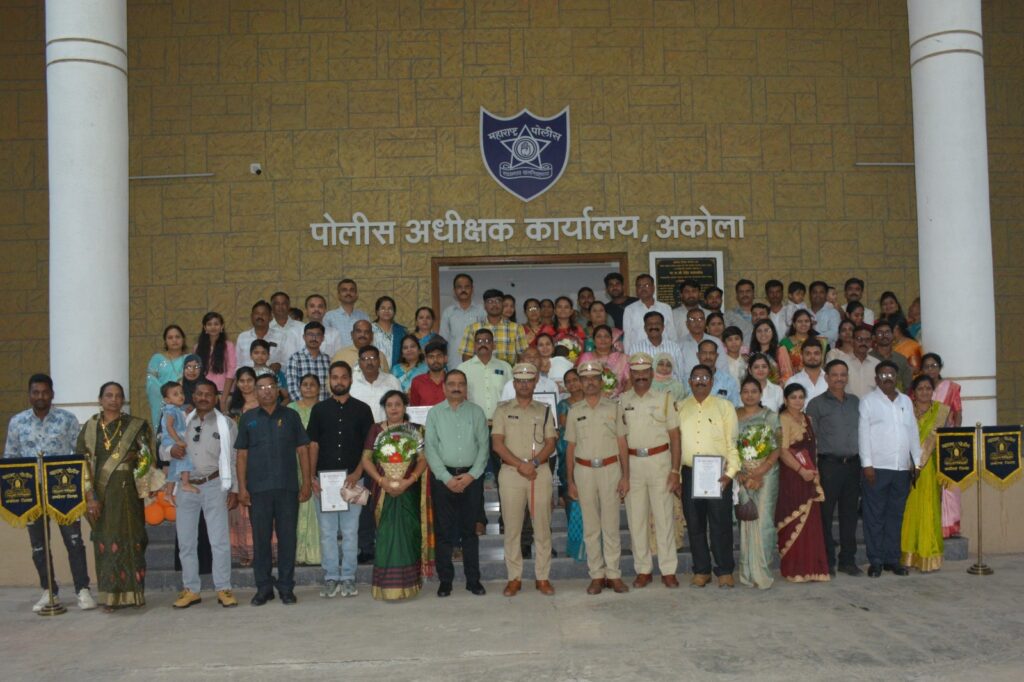 यांचा पोलीस अधीक्षक यांनी सत्कार मूर्ती यांना शाल श्रीफळ व कुटुंबियांना साडी चोडी भेट वस्तु देवुन सत्कार केला. पोलीस कुटुंबातील सदस्य तसेच सत्कार मुर्ती यांनी आपले मनोगत व्यक्त केले. त्यानंतर पोलीस अधीक्षक साहेब यांनी मार्गदर्शन केले, व आपले आरोग्य संभाळण्याचा महत्वाचा सल्ला दिला, व